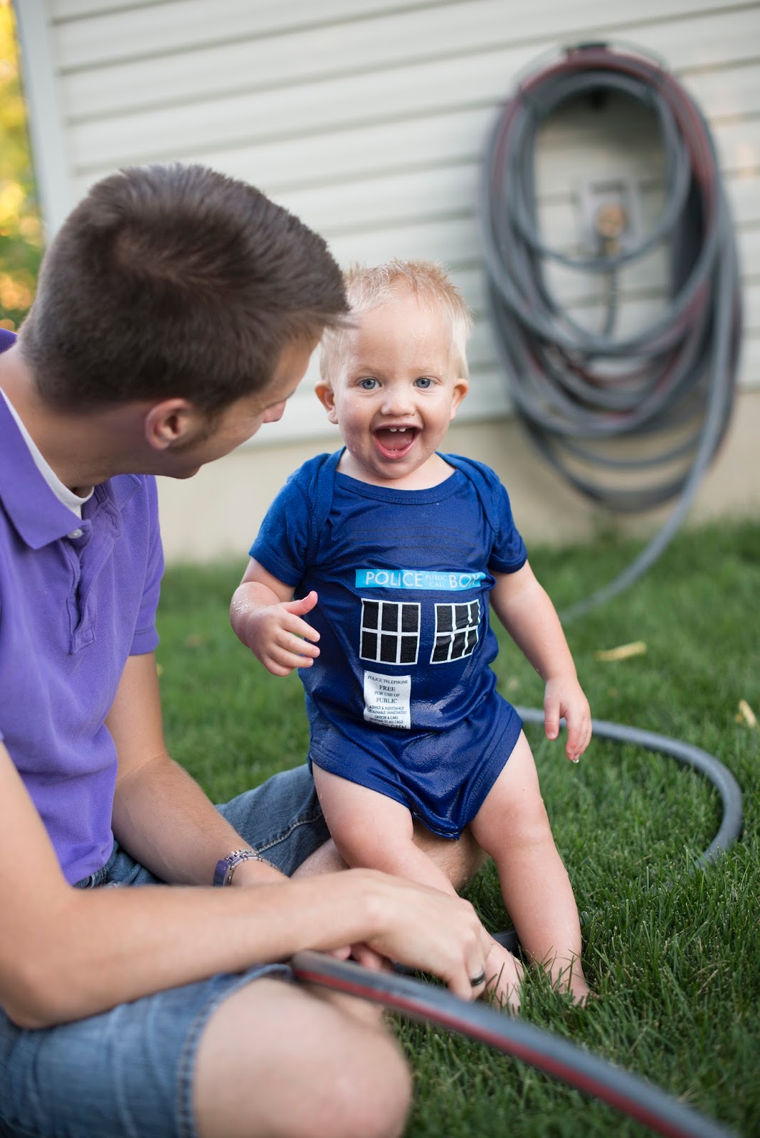 in the backyard. Sam loves playing in the water, it wasn't even that hot outside.